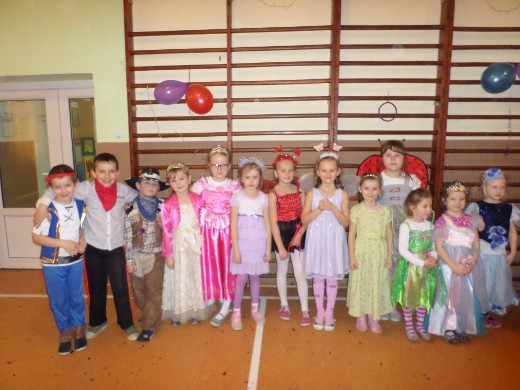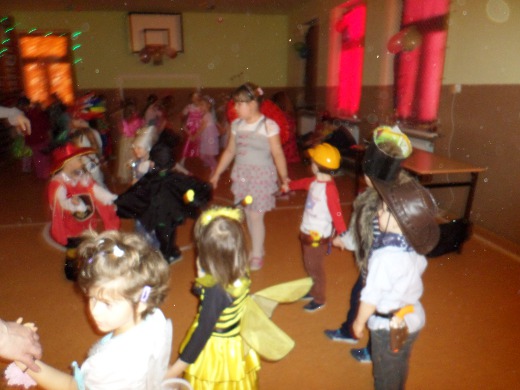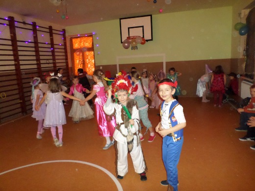 13 lutego przedszkolaki i uczniowie klas I-III bawili się na balu karnawałowym.Każde dziecko przebrało się za wybraną postać, stroje były przepiękne!Każdy uczestnik prezentował bohatera swojego przebrania i był nagradzany oklaskami. Wszystkie dzieci wspaniale się bawiły: tańczyły z paniami w kole, w parach, tworzyły długie węże z figurami.Zabawę urozmaiciło piękne, kolorowe konfetti oraz nastrojowa dekoracja sali. To była bardzo udana impreza!