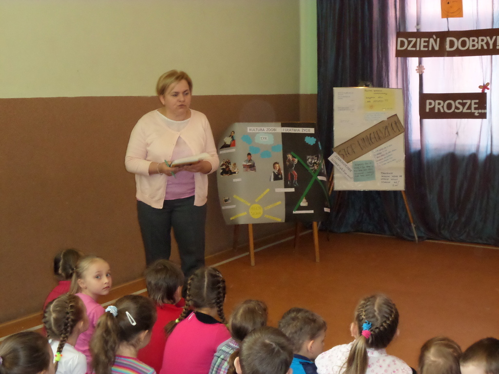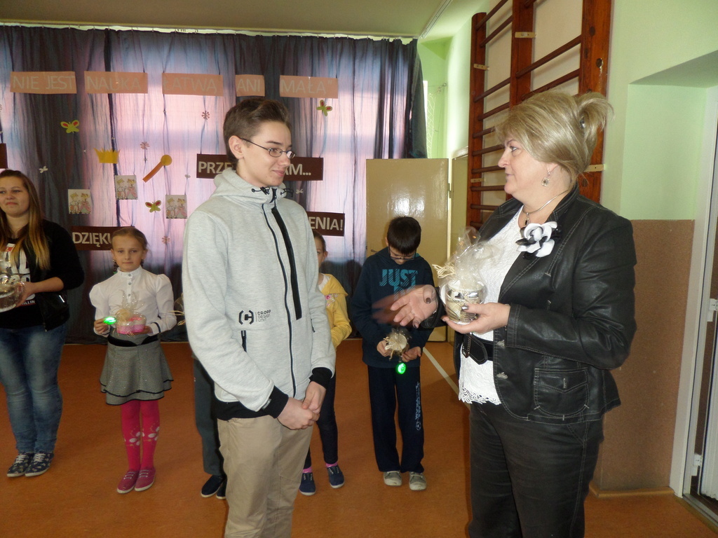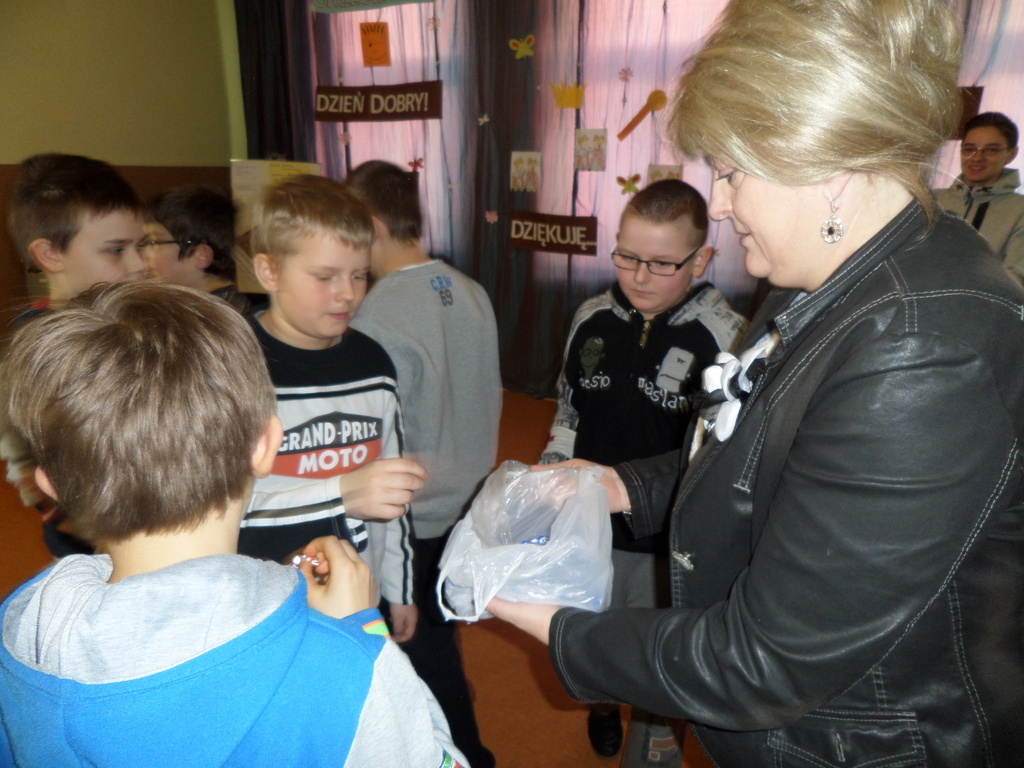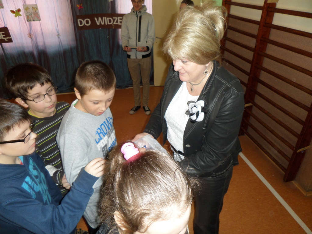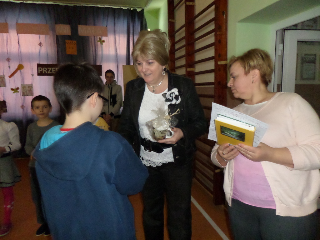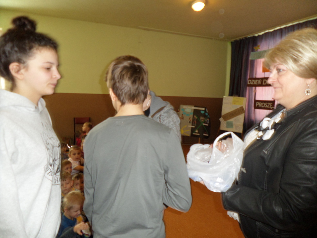 W piątek wszyscy uczniowie i nauczyciele spotkali się w sali gimnastycznej na podsumowaniu „Tygodnia Grzeczności”. Zwycięzcy konkursów i plebiscytów otrzymali nagrody, które wręczała pani dyrektor. Uczniowie klas I, II, III oraz przedszkolacy zaprezentowali program artystyczny.