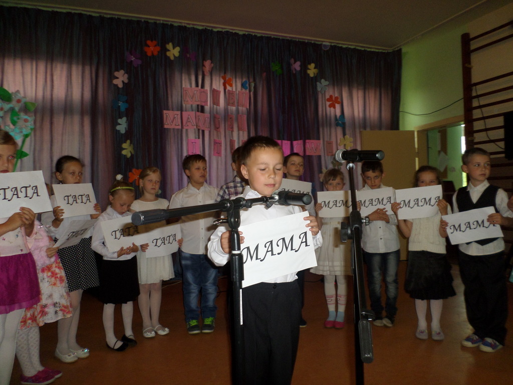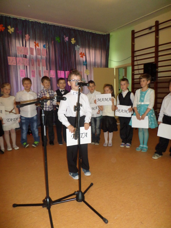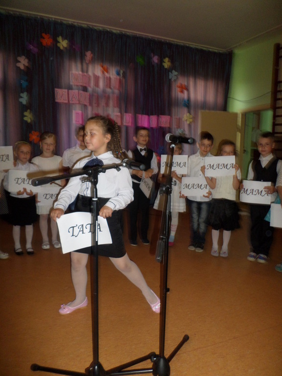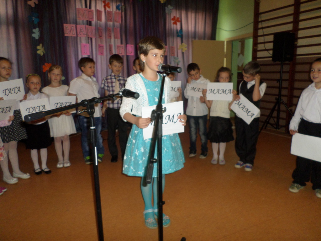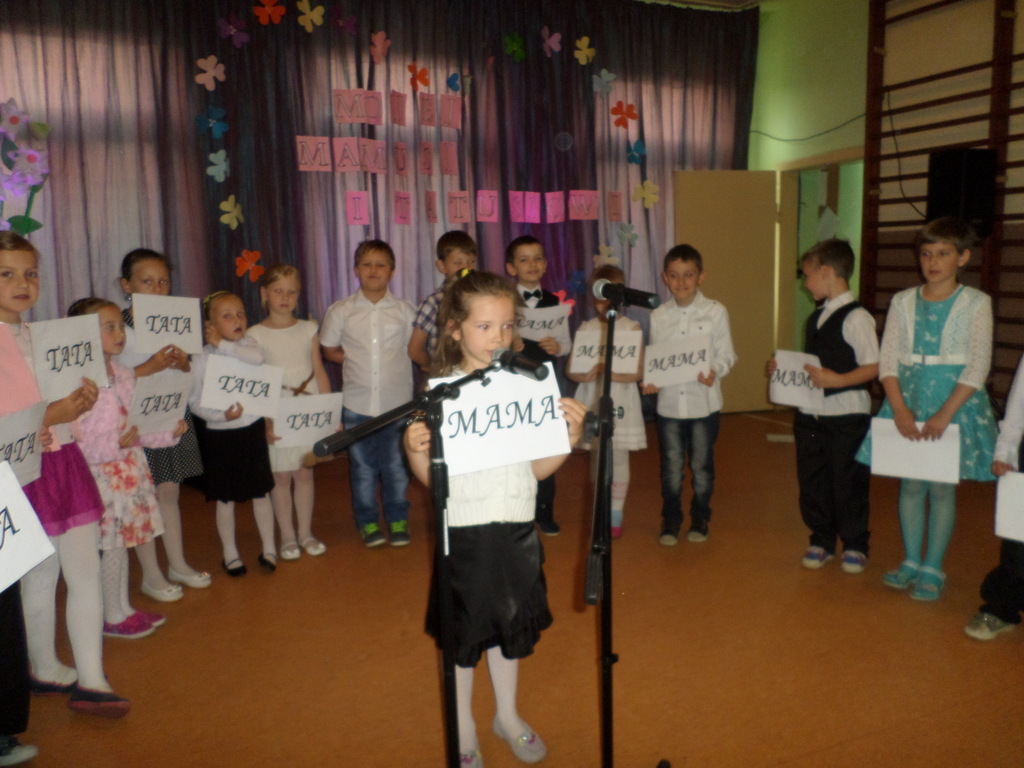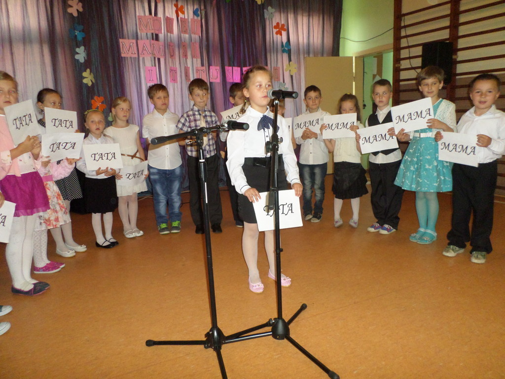 26 maja 2015 r, jak co roku przedszkole i dzieci z klas I-III zorganizowały w naszej szkole spotkanie z rodzicami. Dzieci zaprezentowały liczne wierszyki i piosenki, tańczyły walczyka oraz wręczyły upominki swoim bliskim. Przygotowano poczęstunek, podczas którego dzieci wraz z rodzicami mogły miło spędzić wspólny czas. Nie zabrakło wzruszeń i radości.