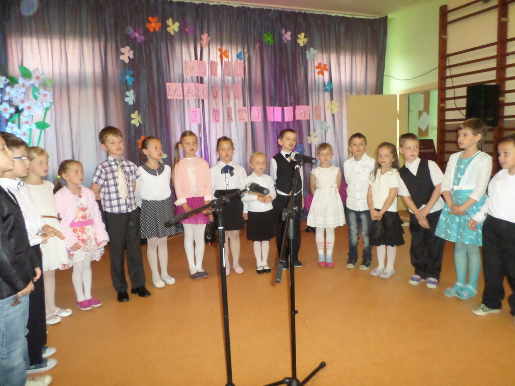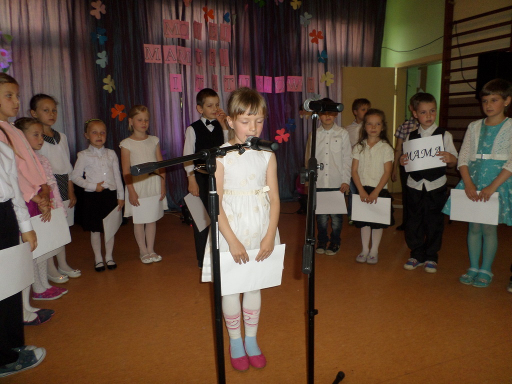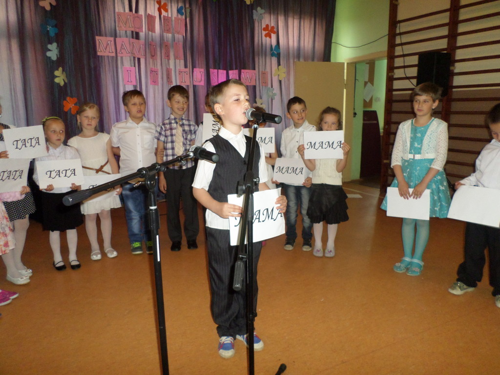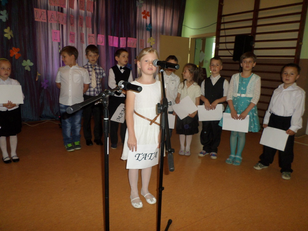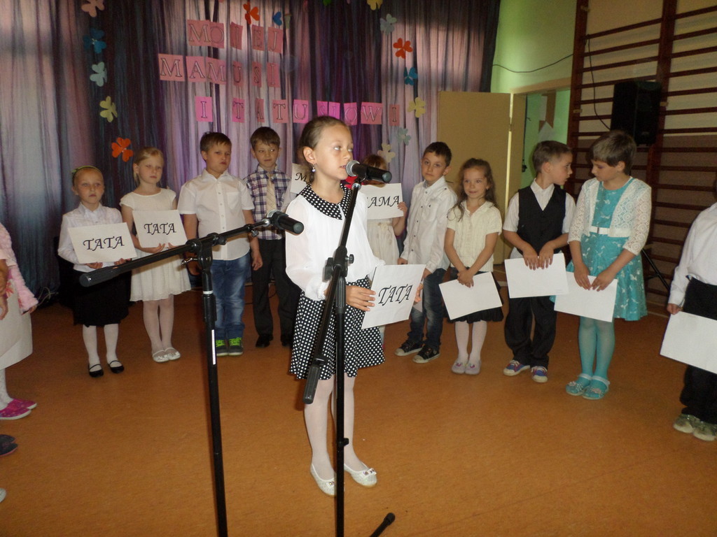 26 maja 2015 r, jak co roku przedszkole i dzieci z klas I-III zorganizowały w naszej szkole spotkanie z rodzicami. Dzieci zaprezentowały liczne wierszyki i piosenki, tańczyły walczyka oraz wręczyły upominki swoim bliskim. Przygotowano poczęstunek, podczas którego dzieci wraz z rodzicami mogły miło spędzić wspólny czas. Nie zabrakło wzruszeń i radości.
