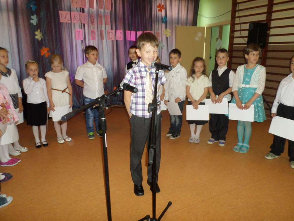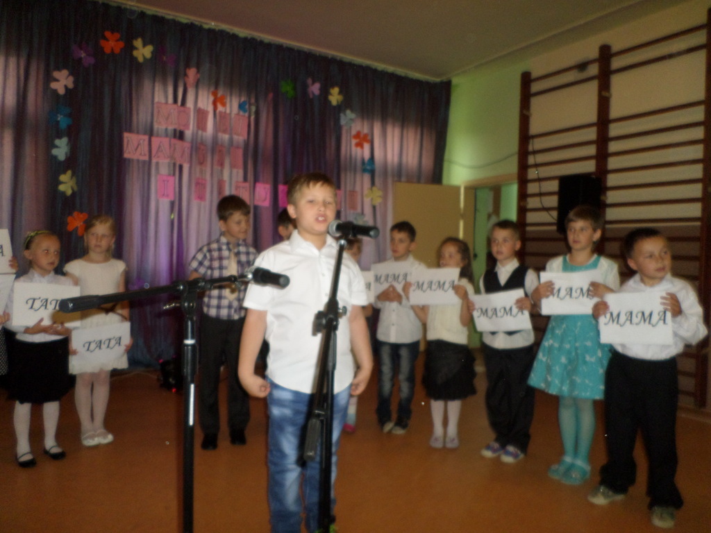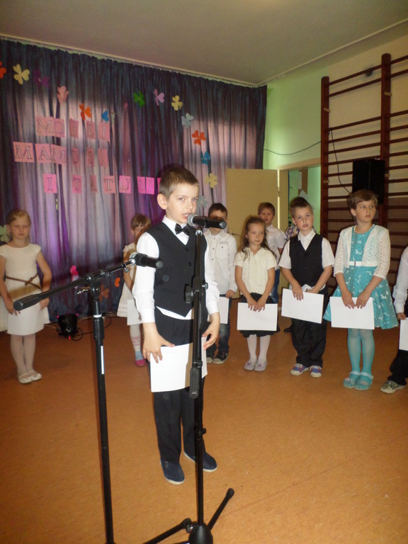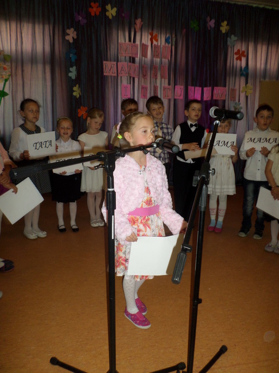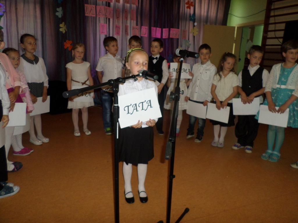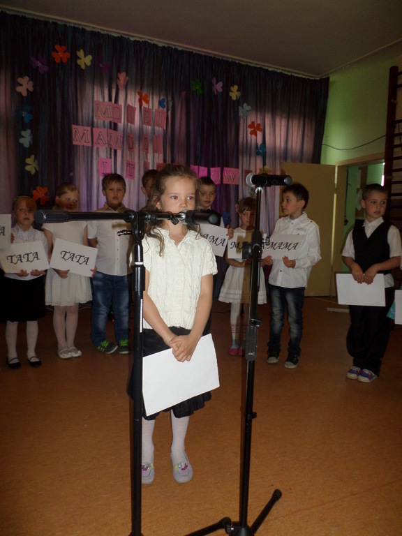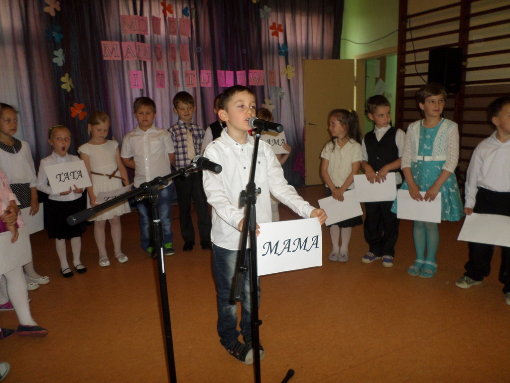 26 maja 2015 r, jak co roku przedszkole i dzieci z klas I-III zorganizowały w naszej szkole spotkanie z rodzicami. Dzieci zaprezentowały liczne wierszyki i piosenki, tańczyły walczyka oraz wręczyły upominki swoim bliskim. Przygotowano poczęstunek, podczas którego dzieci wraz z rodzicami mogły miło spędzić wspólny czas. Nie zabrakło wzruszeń i radości.