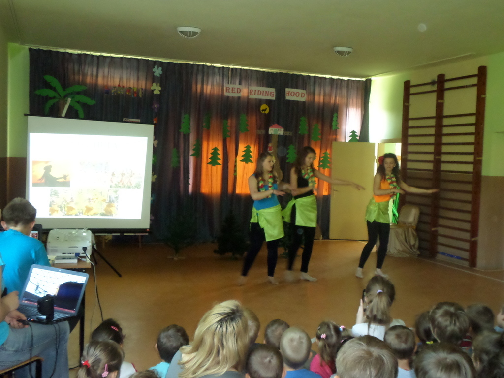 1 czerwca 2015 r. świętowaliśmy Dzień Dziecka. O godzienie 9.15 wszyscy spotkali sie na sali gimnastycznej. Uczniowie pod kierunkiem pani Moniki Paciorek- Krzyżowskiej przygotowali program słowno-muzyczny w ramach Dnia Języka Angielskiego. W programie znalazły się: