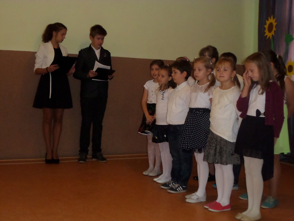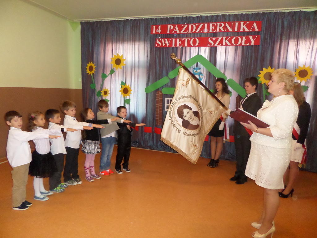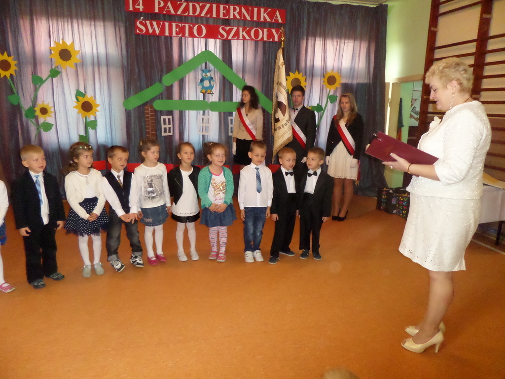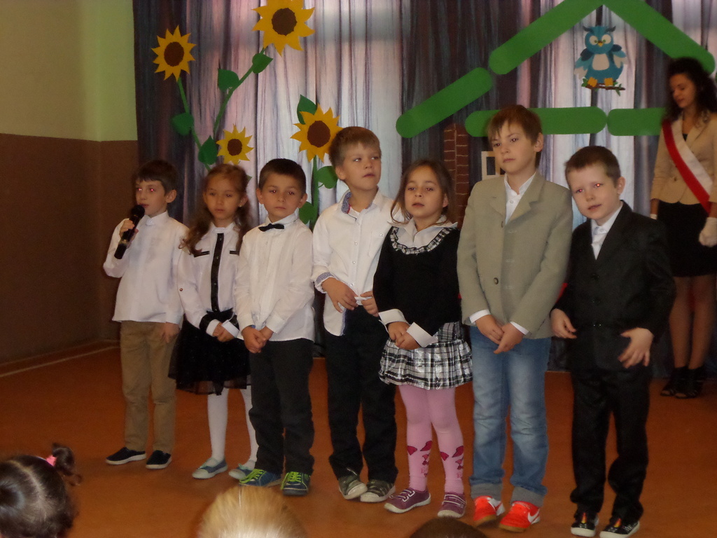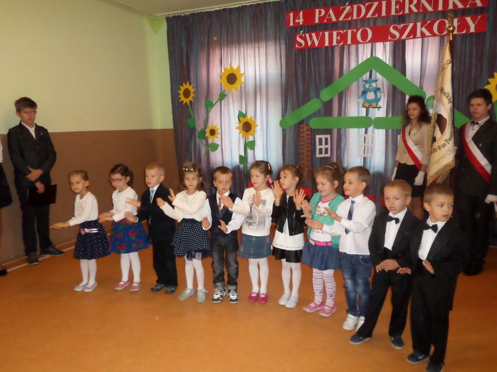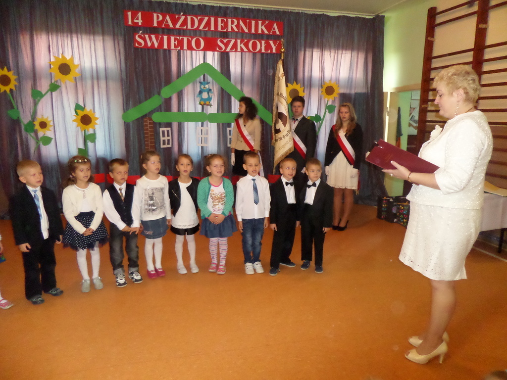 14 października 2015 r. wszyscy uczniowie, nauczyciele i rodzice spotkali się, aby wspólnie świętować Dzień Nauczyciela. Uczniowie przygotowali słowa podziękowań i życzeń dla wszystkich, którzy związani są z pracą w szkole. Byla to również okazja do złożenia ślubowania przez uczniów klasy pierwszej szkoły podstawowej oraz pierwszej gimnazjum. Na pełnoprawnych przedszkolaków pasowani zostali uczniowie klasy "0".