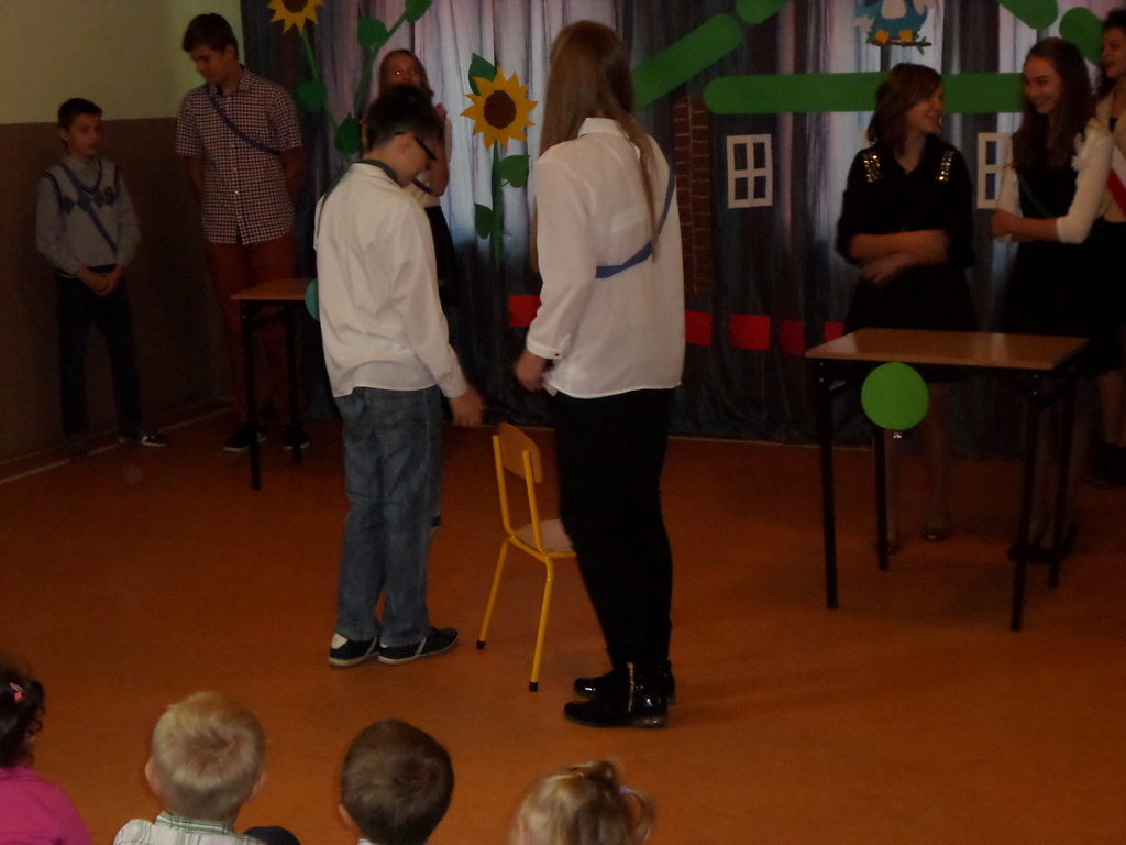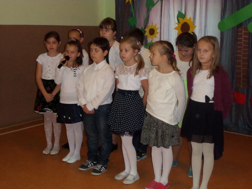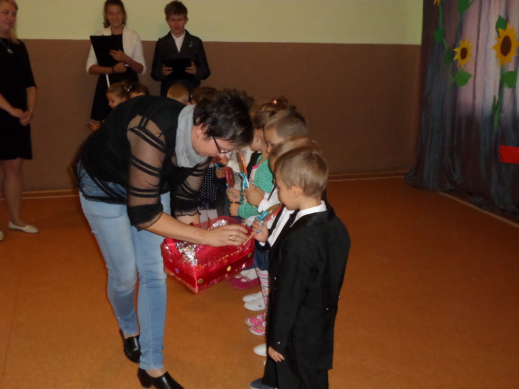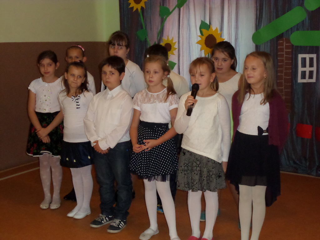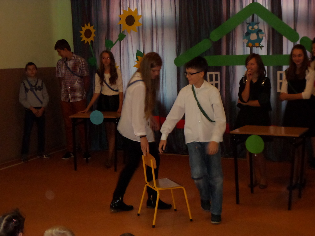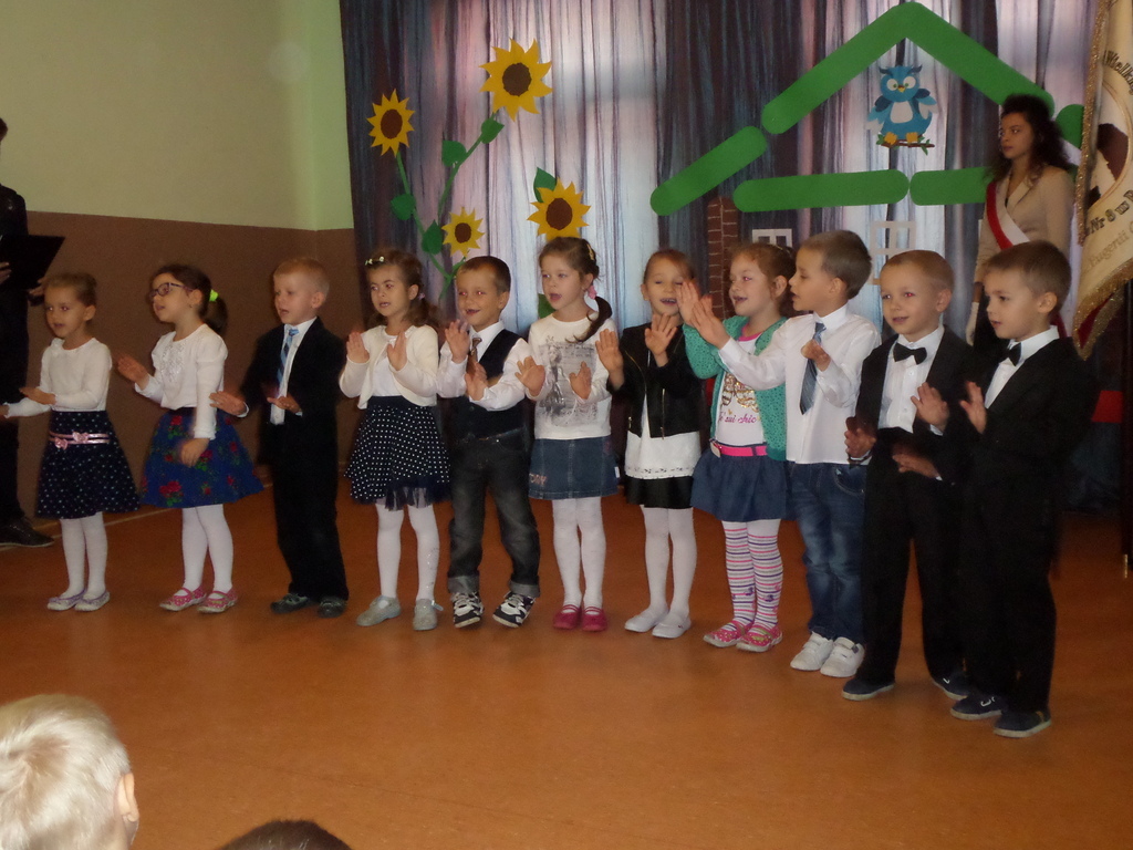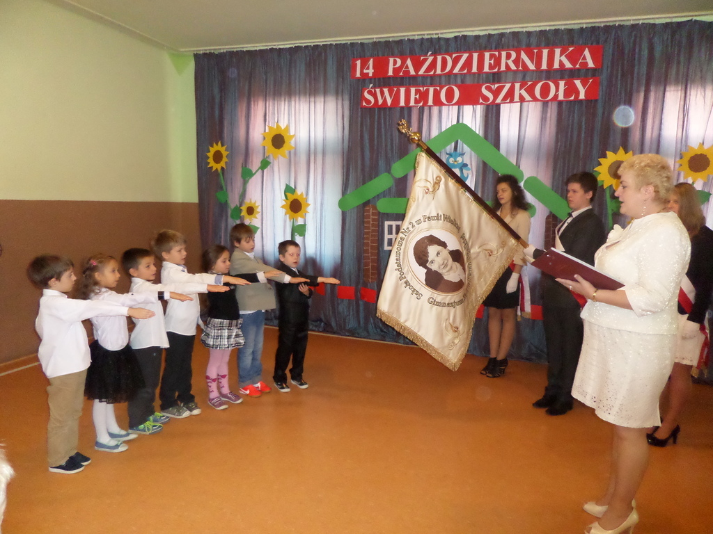 14 października 2015 r. wszyscy uczniowie, nauczyciele i rodzice spotkali się, aby wspólnie świętować Dzień Nauczyciela. Uczniowie przygotowali słowa podziękowań i życzeń dla wszystkich, którzy związani są z pracą w szkole. Byla to również okazja do złożenia ślubowania przez uczniów klasy pierwszej szkoły podstawowej oraz pierwszej gimnazjum. Na pełnoprawnych przedszkolaków pasowani zostali uczniowie klasy "0".