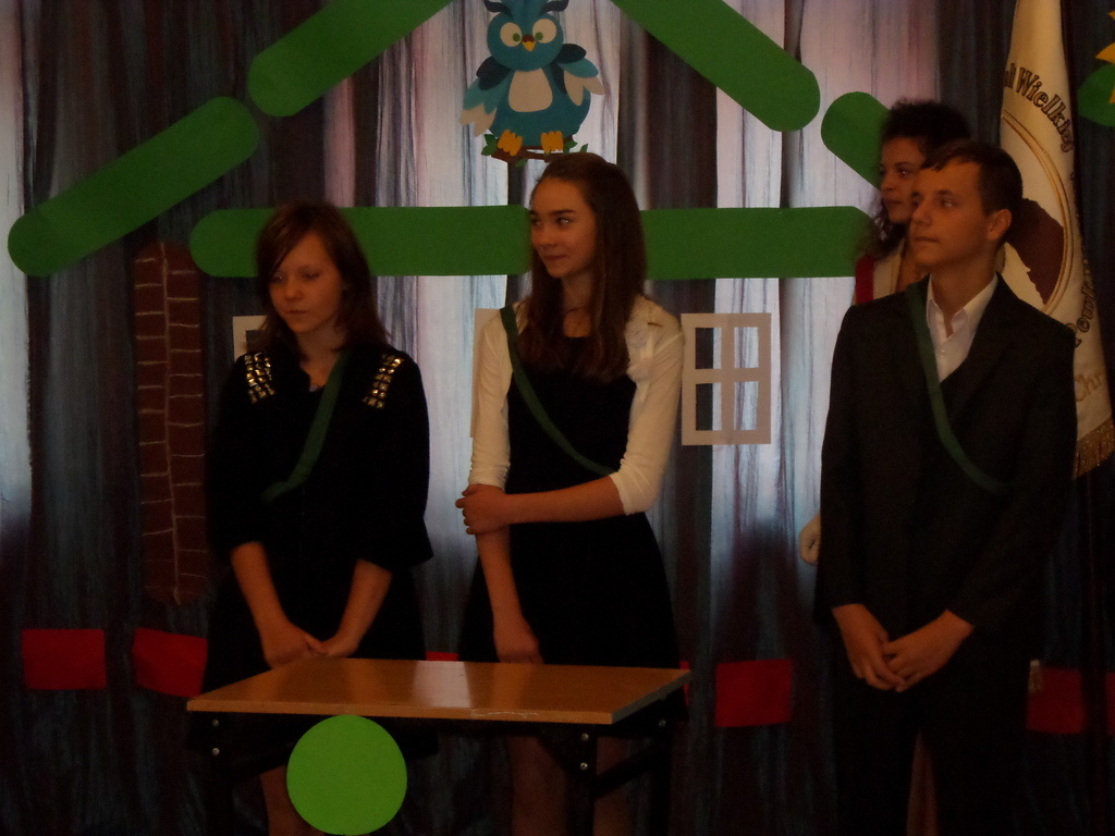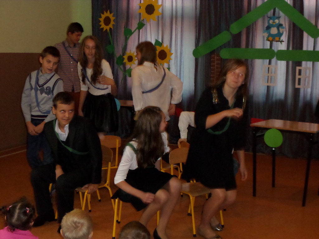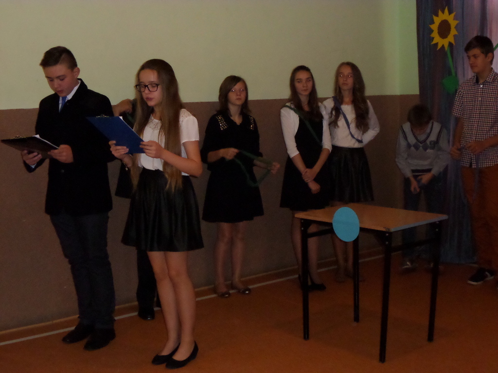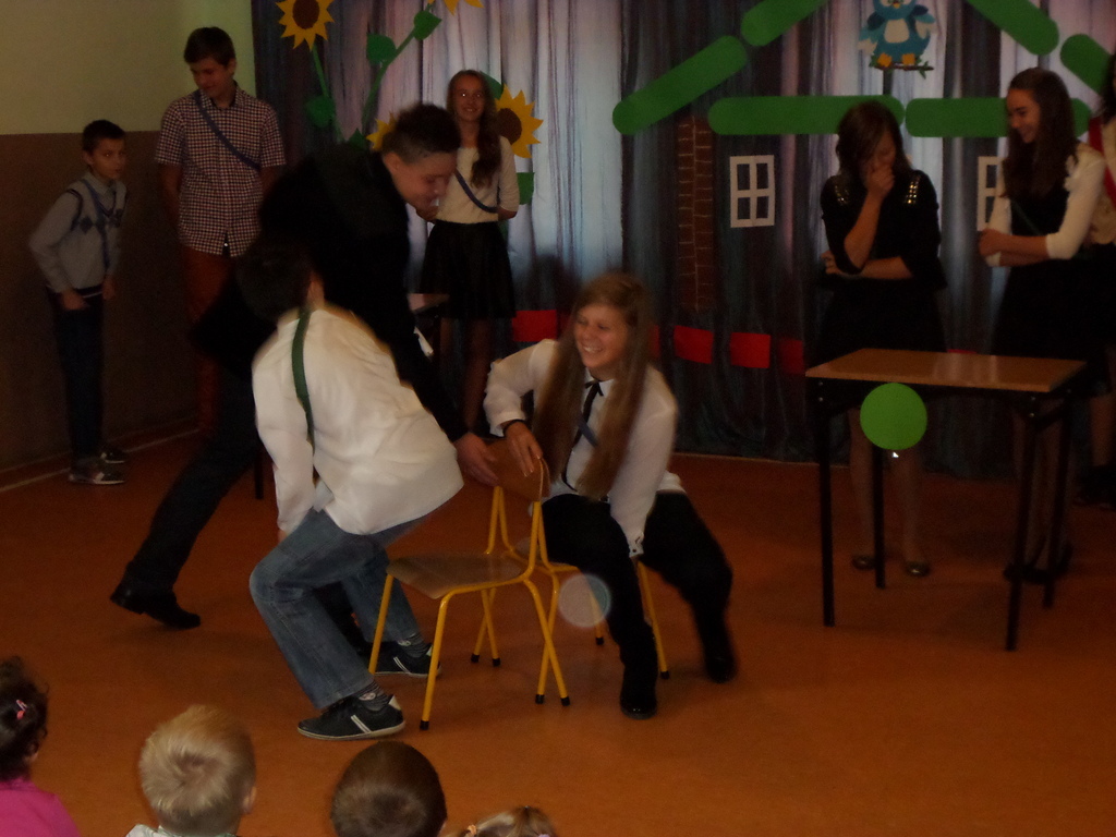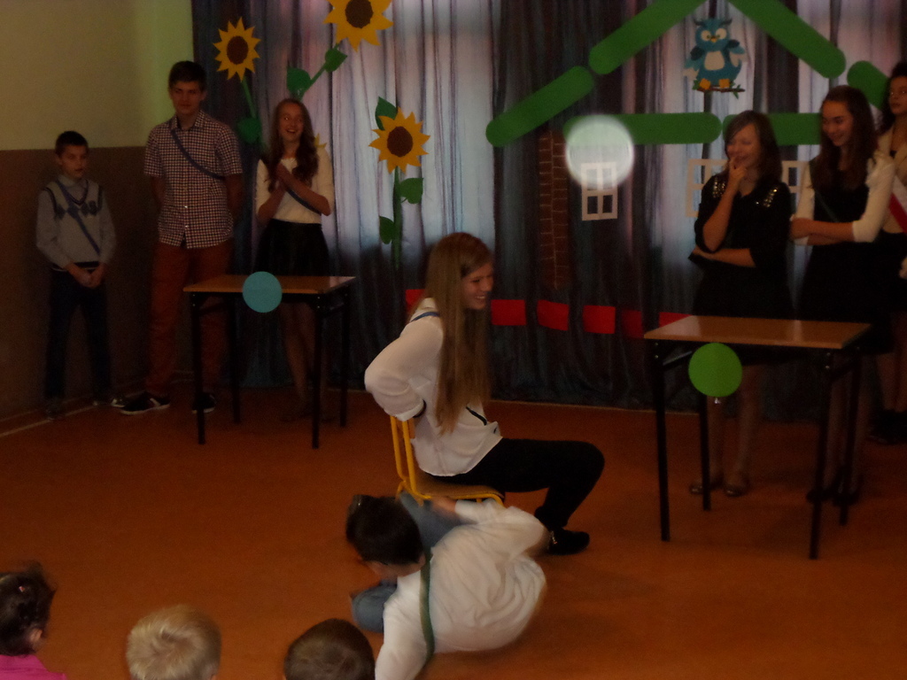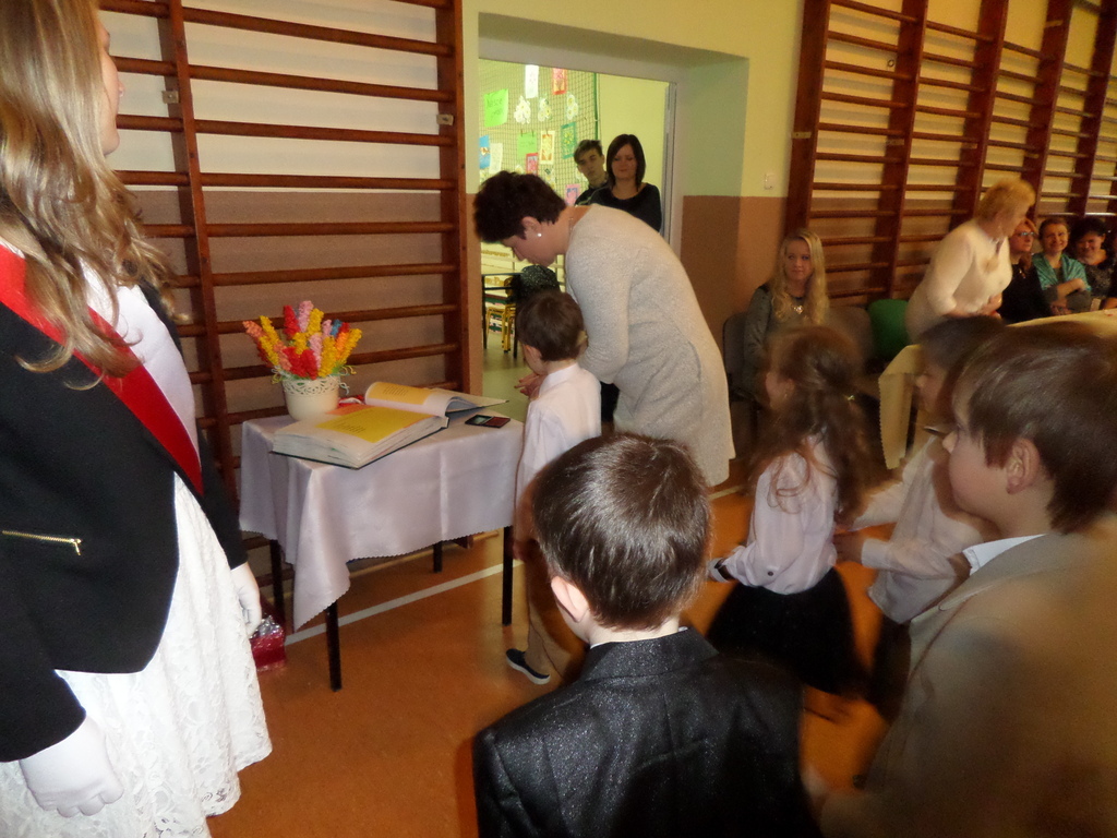 14 października 2015 r. wszyscy uczniowie, nauczyciele i rodzice spotkali się, aby wspólnie świętować Dzień Nauczyciela. Uczniowie przygotowali słowa podziękowań i życzeń dla wszystkich, którzy związani są z pracą w szkole. Byla to również okazja do złożenia ślubowania przez uczniów klasy pierwszej szkoły podstawowej oraz pierwszej gimnazjum. Na pełnoprawnych przedszkolaków pasowani zostali uczniowie klasy "0".