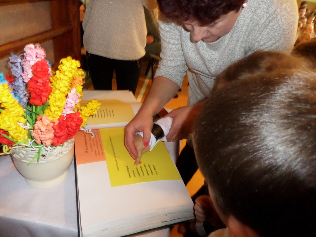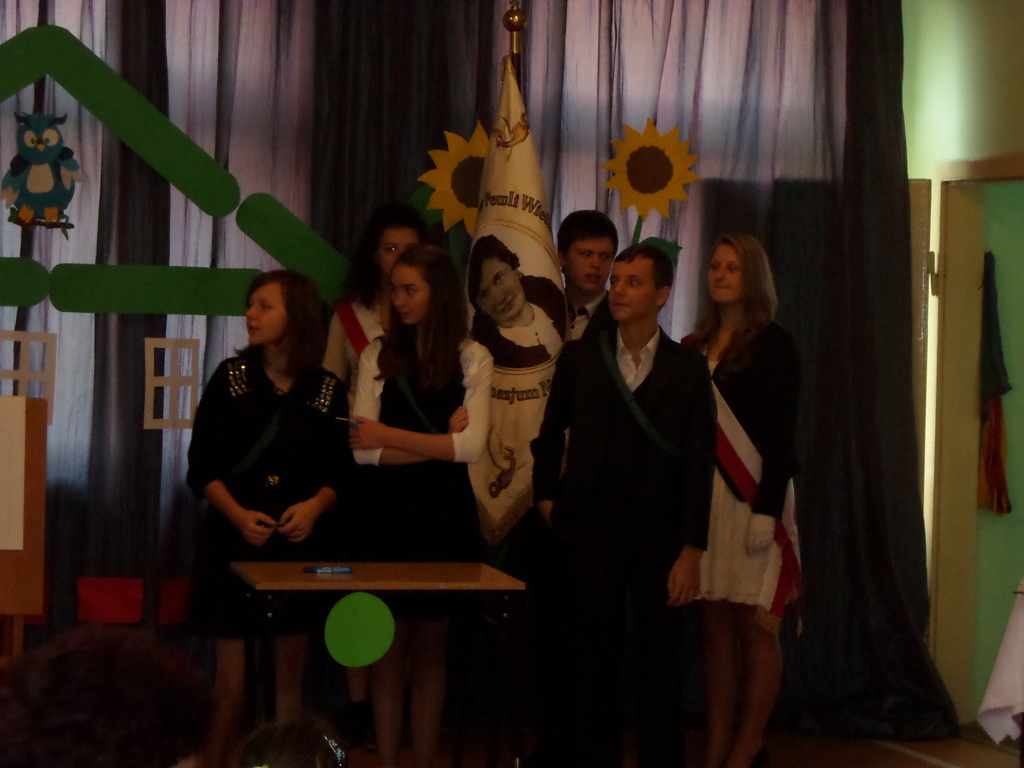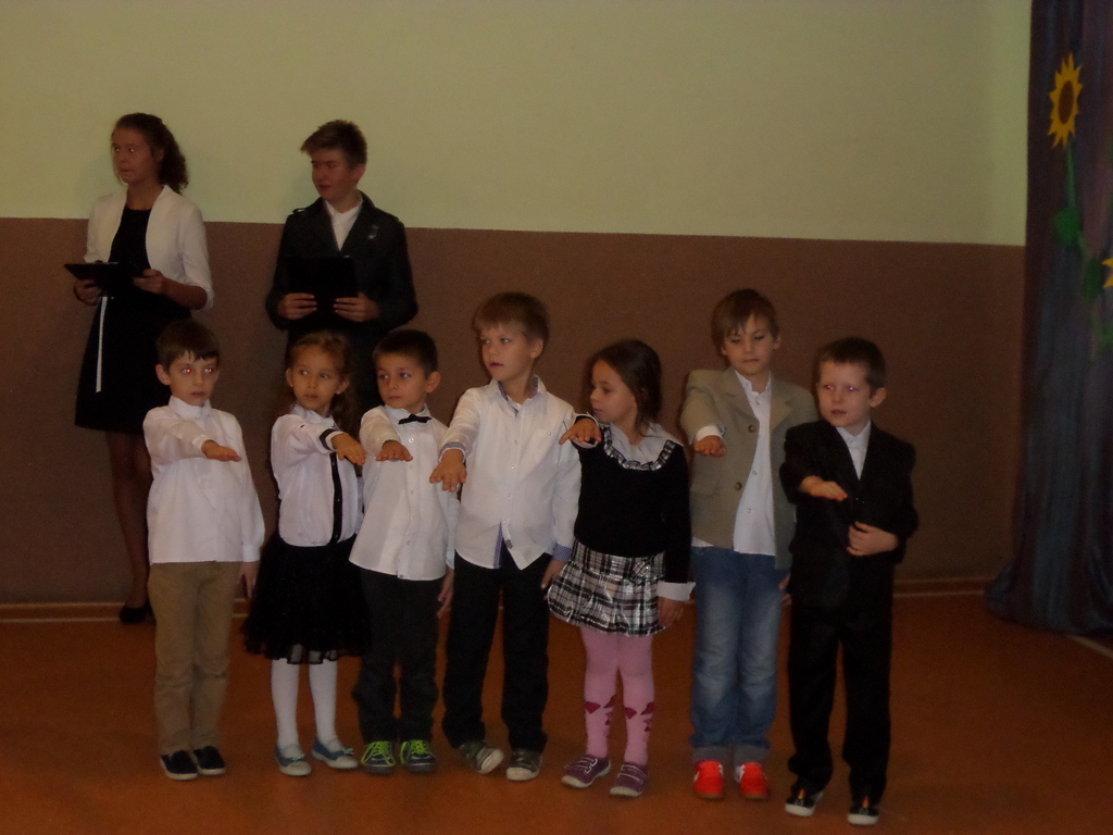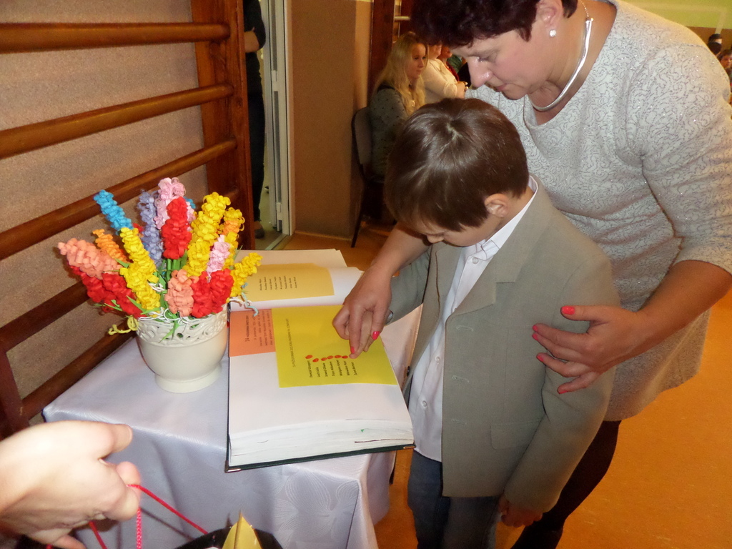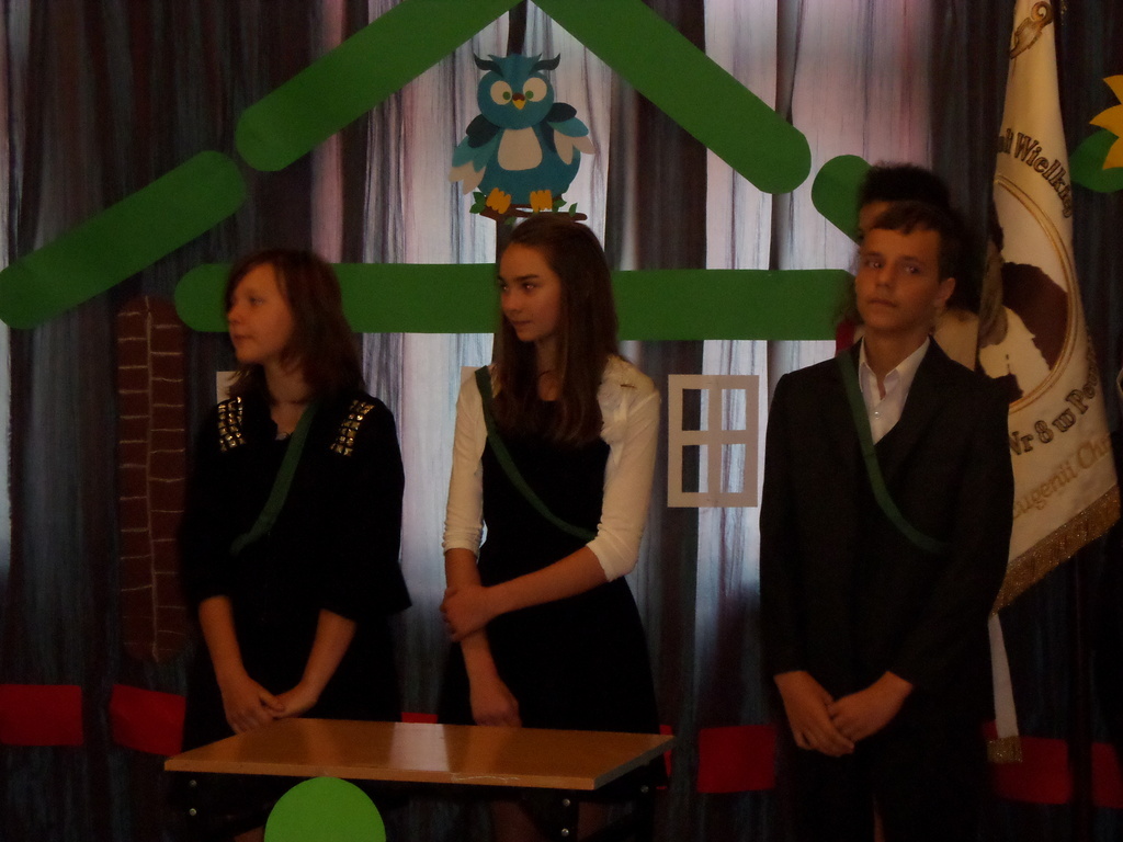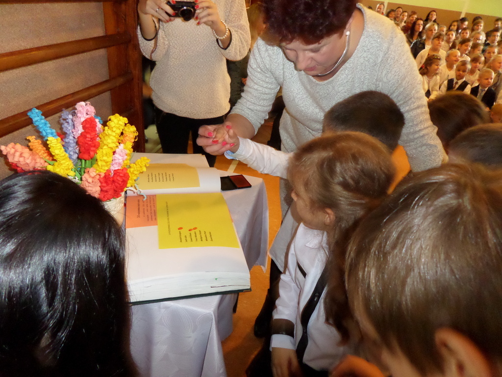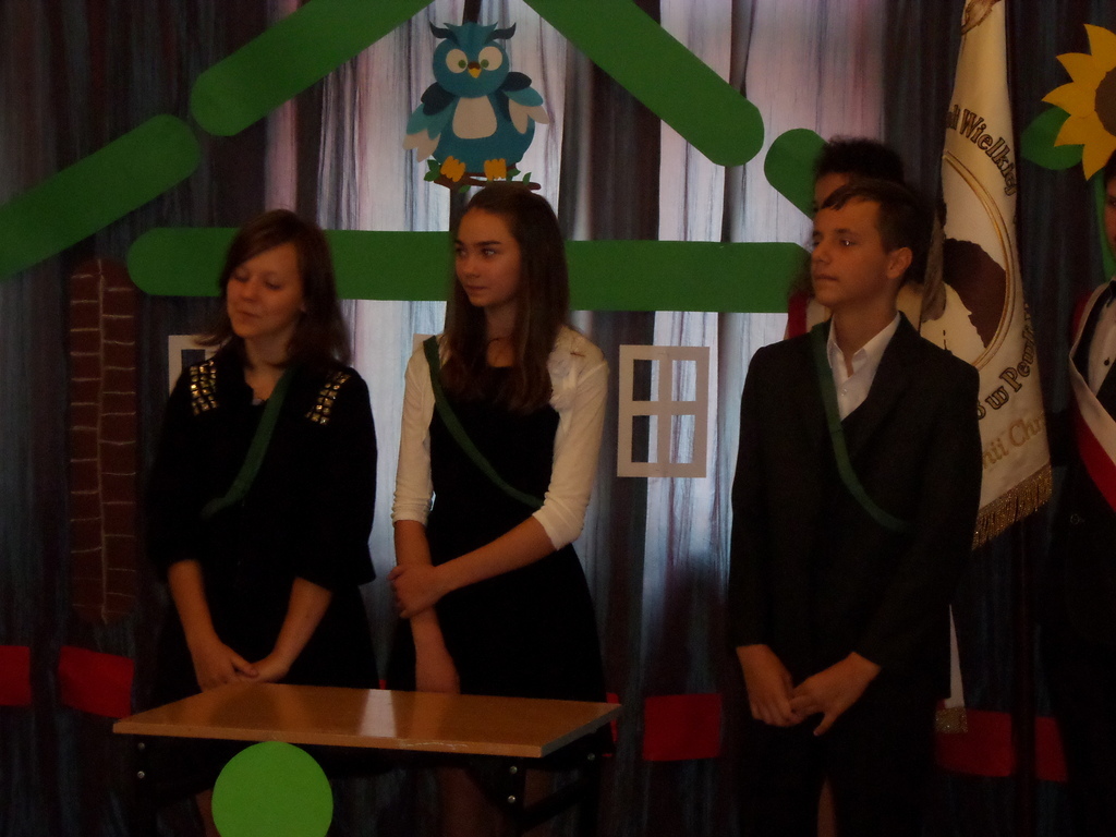 14 października 2015 r. wszyscy uczniowie, nauczyciele i rodzice spotkali się, aby wspólnie świętować Dzień Nauczyciela. Uczniowie przygotowali słowa podziękowań i życzeń dla wszystkich, którzy związani są z pracą w szkole. Byla to również okazja do złożenia ślubowania przez uczniów klasy pierwszej szkoły podstawowej oraz pierwszej gimnazjum. Na pełnoprawnych przedszkolaków pasowani zostali uczniowie klasy "0".