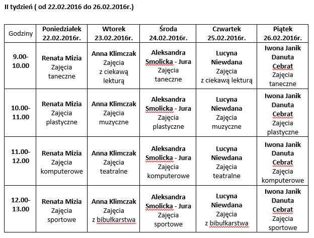 W naszej szkole organizowane będą ferie zimowe dla uczniów naszej szkoły.