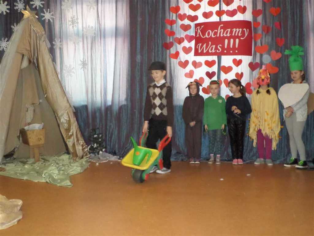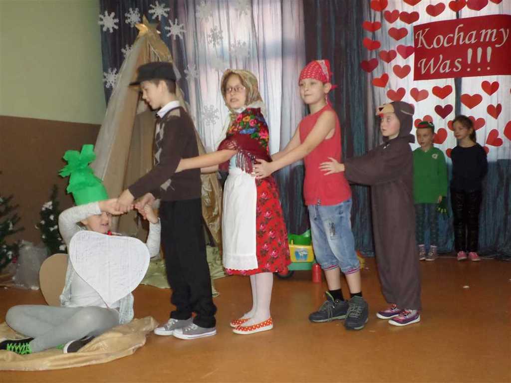 Dzisiaj (1.02.2017 r.) gościliśmy w naszej szkole babcie i dziadków z okazji ich święta. Przy suto zastawionych stołach mieli możliwość obejrzenia przedstawień w wykonaniu swoich wnucząt. Najpierw dzieci przedszkolne pięknie recytowały dla nich wiersze pełne życzeń, śpiewały piosenki, a nawet tańczyły do utworu "Kawiarenki". Następnie uczniowie klasy trzeciej brawurowo i z humorem zaprezentowali interpretację wiersza Juliana Tuwima pt. "Rzepka". Dzieci z klasy drugiej przygotowały pięknie szopkę bożonarodzeniową z góralskimi życzeniami. Wszystko podsumował występ szkolnego zespołu "Góralskie Nutki", który zaprezentował program kolędowy. Wreszcie dzieci zaśpiewały wspólnie 100 lat oraz wręczyły upominki i laurki swoim babciom i dziadkom.