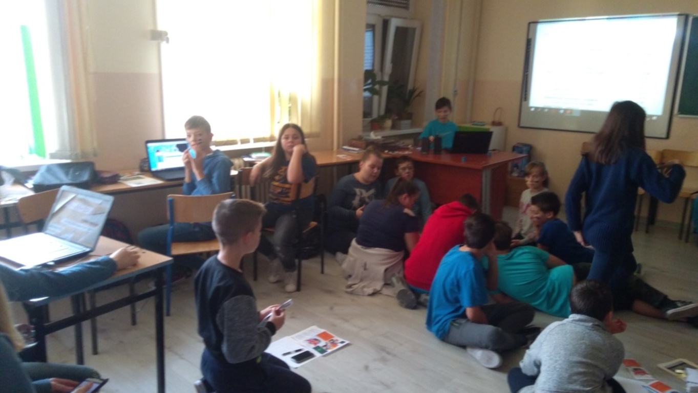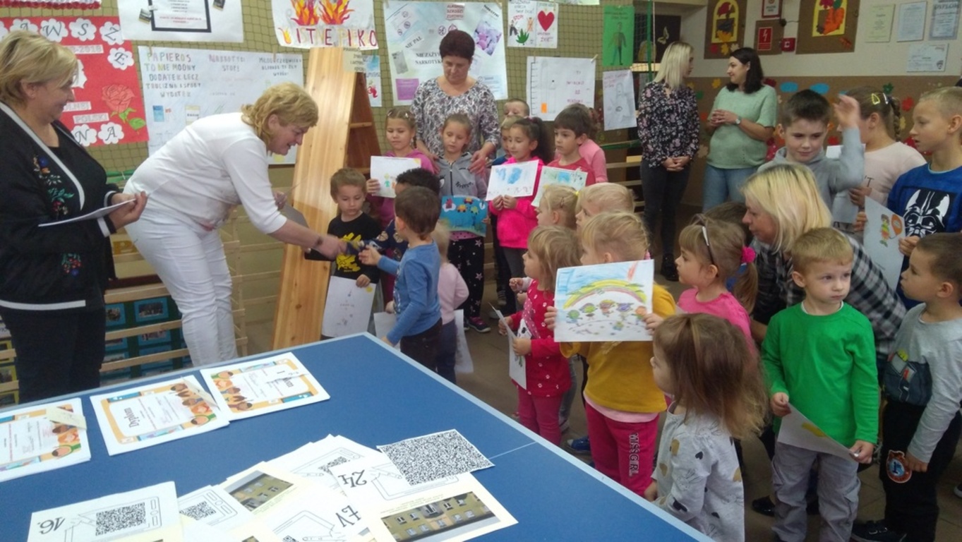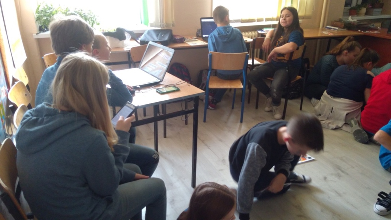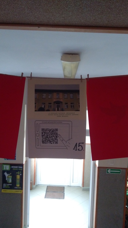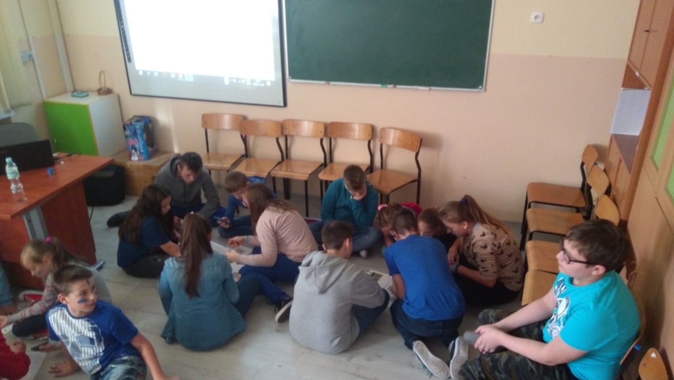 - Została przygotowana gra terenowa z użyciem kodów QR, która pozwalała na aktywne poznanie i zapamiętanie ogólnoświatowych oraz szkolnych praw dziecka. W tym dniu wybrani uczniowie wyjątkowo przynieśli do szkoły smartfony, które zawierały czytnik kodów QR. Przed rozpoczęciem zabawy prowadzący schował karty z pytaniami w różnych zakątkach budynku placówki. Uczniowie, którzy zostali podzieleni na grupy, musieli odnaleźć wylosowane zadania, a następnie za pomocą skanera kodów QR odczytać pytania i zadania. Treści poleceń sprawdzały wiedzę na temat praw i obowiązków dziecka oraz dziecka – ucznia. W trakcie rozwiązywania zadań, uczniowie korzystali m.in. z zapisów Konwencji o prawach dziecka oraz Statutu Zespołu. Na koniec turnieju reprezentanci grup odczytali wyniki swojej pracy.