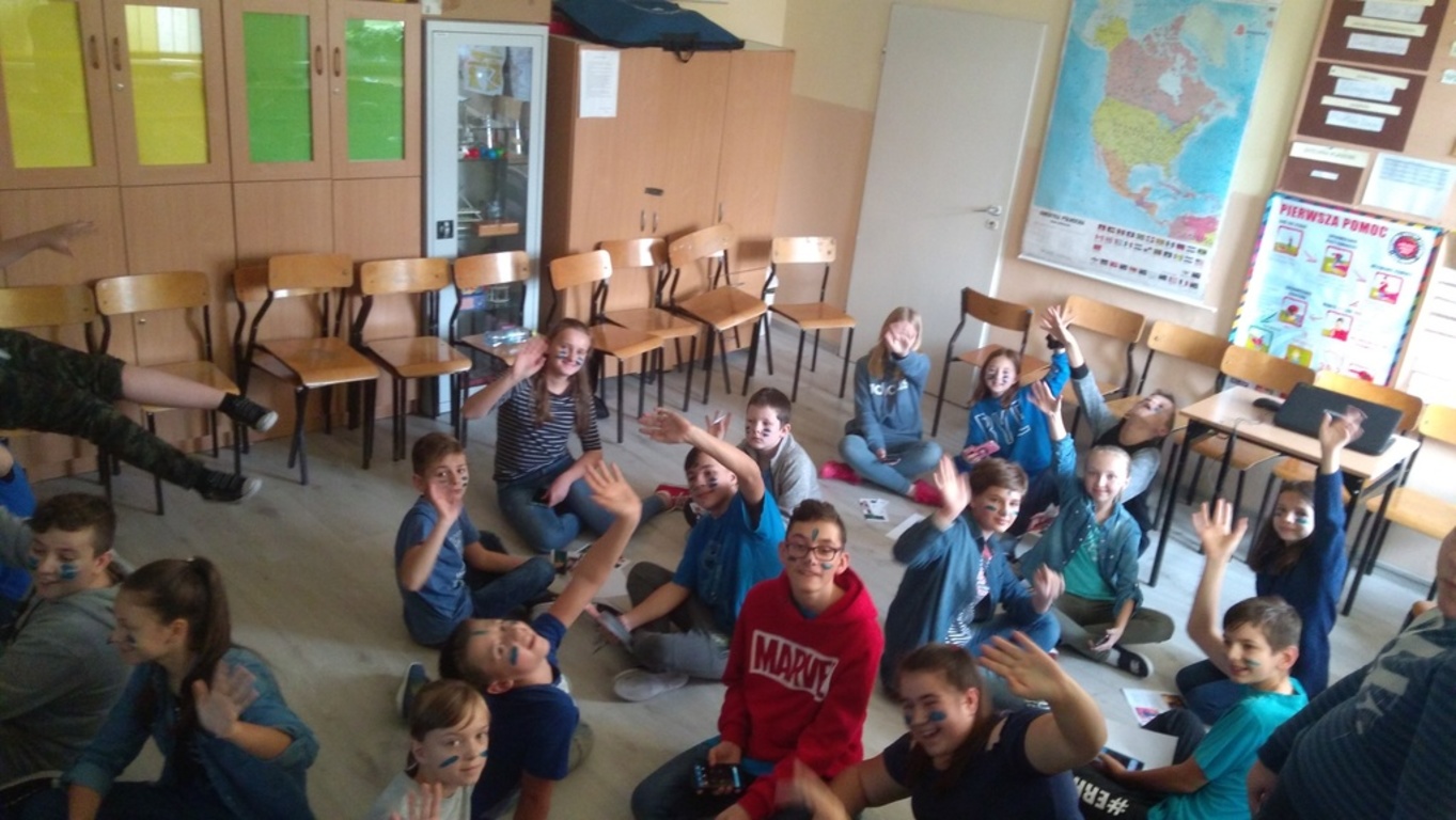 - W tym dniu wszyscy przyszli ubrani na niebiesko lub przynajmniej z jednym elementem garderoby w tym kolorze. Dodatkowo błękitne barwy pojawiły się na rękach i twarzach dzieci.