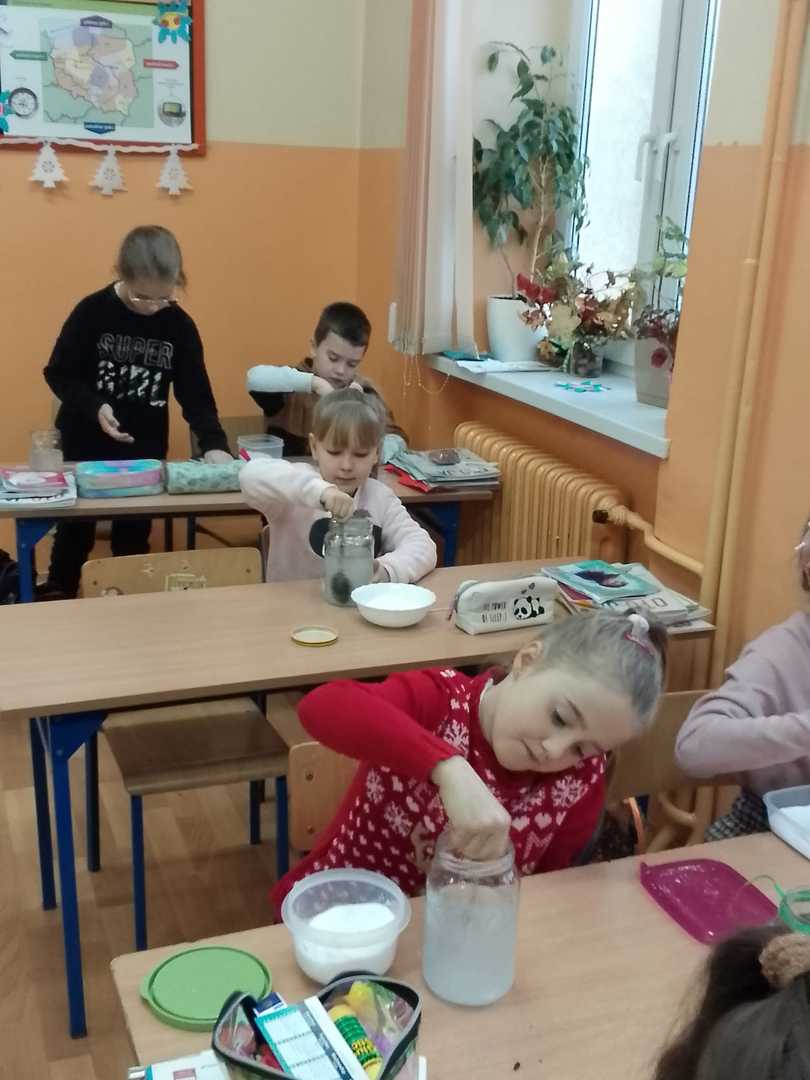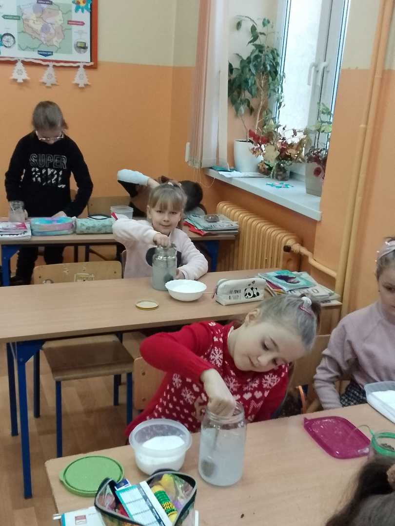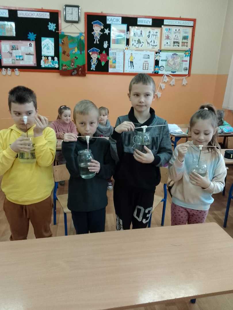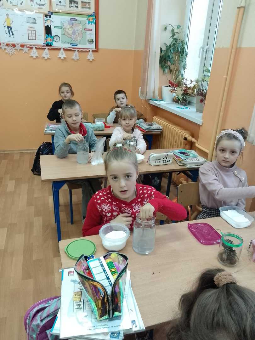 Uczniowie klasy drugiej na zajęciach przyrodniczych mieli okazję przeprowadzić doświadczenie krystalizacji soli. Na pierwsze efekty trzeba było poczekać kilkanaście dni, a cały proces trwał aż trzy tygodnie i nadal trwa. Jednak opłacało się czekać, gdyż uzyskane efekty zaskoczyły wszystkich.