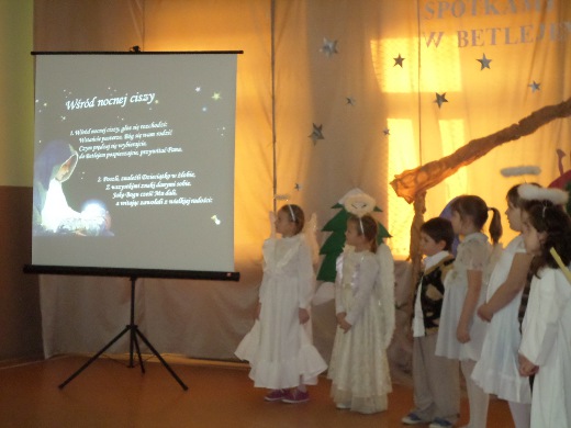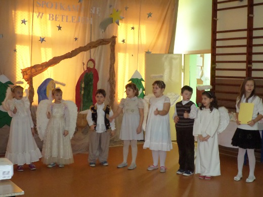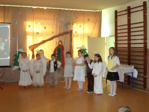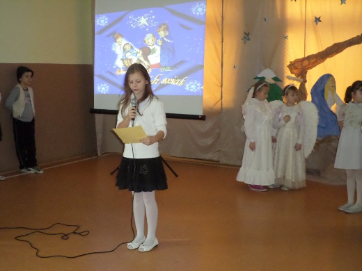 W ostatnim dniu nauki przed Świętami Bożego Narodzenia odbyła się w naszej szkole wspólna Wigilia, na której śpiewaliśmy piękne polskie kolędy. Pani dyrektor wraz z gronem pedagogicznym złożyła uczniom i ich rodzicom najserdeczniejsze życzenia z okazji nadchodzących Świąt oraz Nowego Roku 2014.