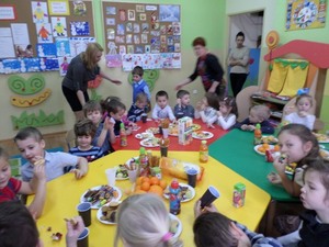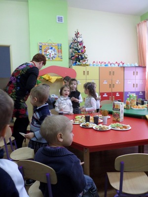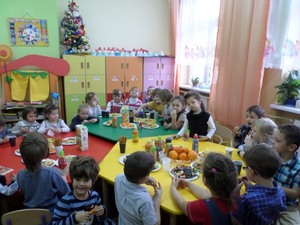 20 grudnia przedszkolaki z oddziału przedszkolnego spotkały się na wspólnej Wigilii. Najpierw starszaki przygotowały salę, ubrały choinkę, przyozdobiły salę, ustawiły w koło stoliki. Później razem z maluchami układały na stolikach przyniesione z domu smakołyki - owoce, słodycze i napoje. Następnie przyszedł czas na dzielenie się opłatkiem, każdy każdemu składał życzenia. Podczas poczęstunku dzieci śpiewały kolędy, a panie opowiadały o pięknych zwyczajach bożonarodzeniowych.
